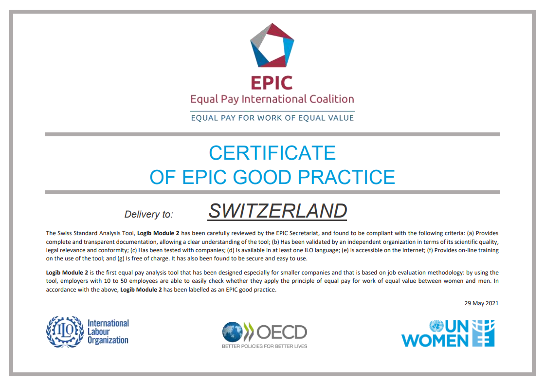 Logib Modul 1 trägt den Public Service Award der UNO. Beide Module haben von der Equal Pay International Coalition (OECD, ILO, UN Women) das Label «EPIC Good Practice» erhalten.