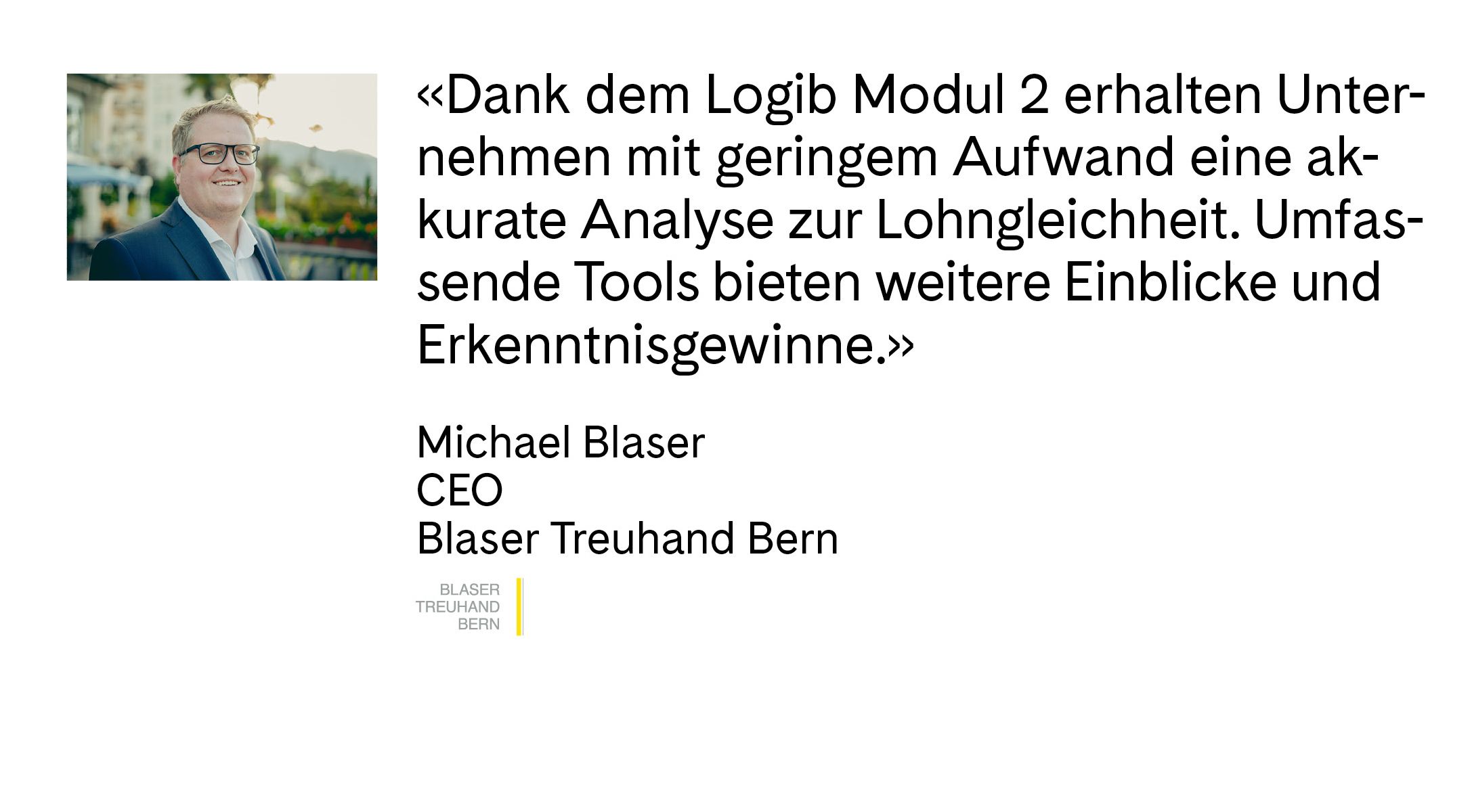 Mit Logib stellt der Bund wissenschaftlich anerkannte, sichere und rechtskonforme Instrumente für die Lohngleichheitsanalyse zur Verfügung. Arbeitgebende können damit ihre Lohnpraxis überprüfen und so die Lohngleichheit im Unternehmen fördern. Es gibt zwei Module, wobei sich Modul 1 an grosse Unternehmen wendet und Modul 2 sich für kleinere Unternehmen eignet.