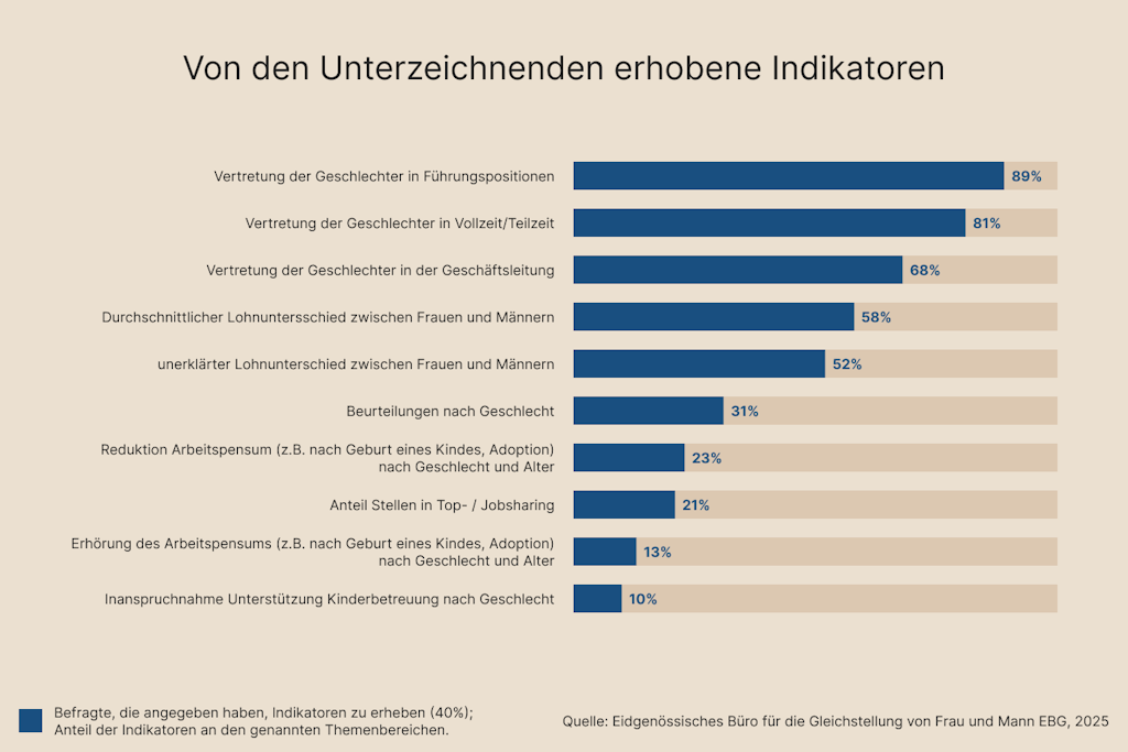 Mit der Unterzeichnung der Charta der Lohngleichheit verpflichten sich die Akteure des öffentlichen und staatsnahen Sektors unter anderem dazu, regelmässig über ihre Fortschritte in Bezug auf die Lohngleichheit und berufliche Gleichstellung zu informieren. Um Bilanz zu ziehen, führt das Eidgenössische Büro für Gleichstellung unter den Unterzeichnenden regelmässig eine Umfrage durch.