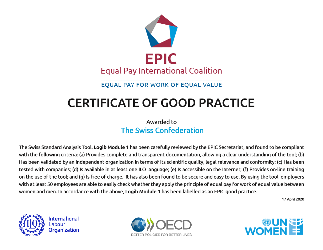 Logib Module 1 a remporté le Prix de l’ONU pour le Service public. Les deux modules se sont vus décerner le label de bonnes pratiques de la Coalition internationale pour l’Égalité salariale (OCDE, OIT, ONU Femmes).
